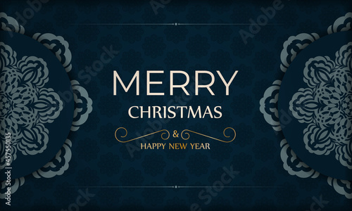 Dark blue happy new year brochure with winter blue ornament