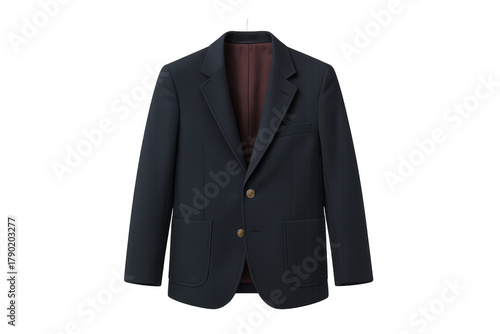 blazer, jacket, dark, blue, formal, wear, man, fashion, business, attire, apparel, clothing, suit, sport, coat, elegance, style, professionalism, smart, casual attire, menswear, garment, textile, studio, shot, clear, background, cut-out, isolated, object, no, people, single, item, buttons, pocket, lapel, collar, fabric, clothes rack, modern, classic, sophisticated, stylish, tailored, outerwear, luxury, shop