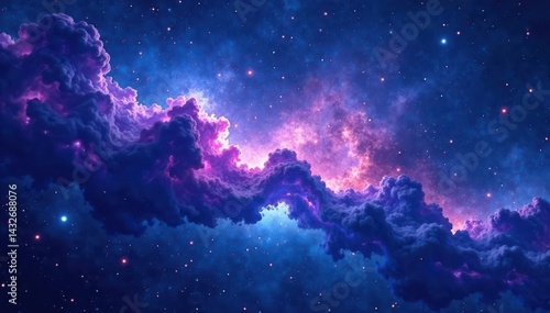 Dark blue nebula, purple stars, galaxy watercolor wash , stardust, hand painted