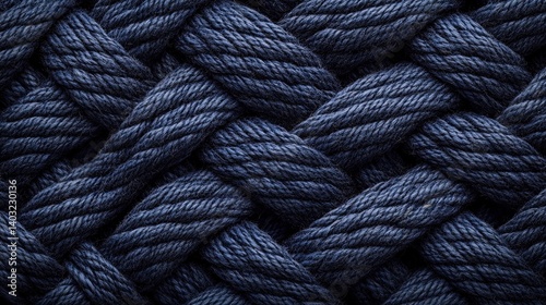 Dark blue rope texture with twists and knots, background for nautical or rugged themes, ideal for coastal, maritime, and adventure concepts
