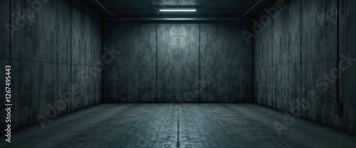 Dark Empty Concrete Room with Dim Lighting, Industrial Space