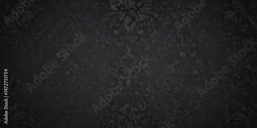 Dark grey background with black damask & floral detail , gray, damask, dark