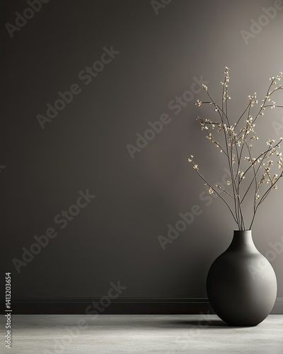 Dark Grey Room with Black Vase and Minimalist Branch Decor