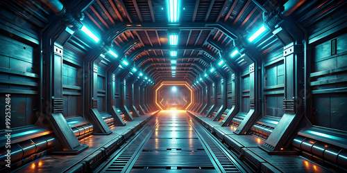 Dark grunge sci-fi tunnel corridor with glowing light, perfect for futuristic cyberpunk scenes , Grunge, Sci-fi, Concrete, Background