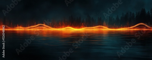 Dark lake with glowing neon lines