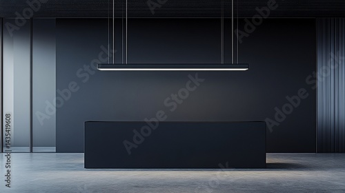 reception, desk, office, modern, minimalist, dark, interior, lighting, sleek, concrete, corporate, business, workspace, lobby, design, furniture, contemporary, professional, elegant, stylish, black, grey, room, building, architecture, space, background, commercial, industrial, clean, simple, empty, blank, luxury, aesthetic, style, setting, environment, atmosphere, scene