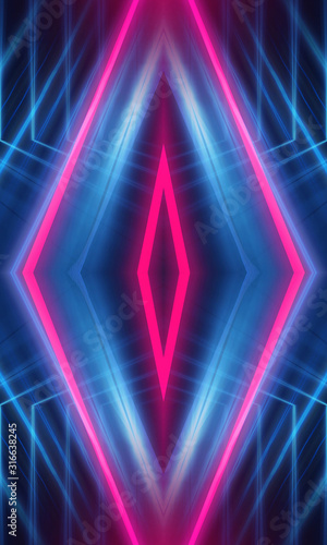 Dark neon background with lines and rays. Blue and pink neon. Abstract futuristic background. Night scene with neon, light reflection.