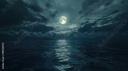 moon, night, sky, water, sea, cloud, ocean, dark, cloud, blue, moonlight, full, light, nature, space, star, fantasy, landscape, sun, beach, black, planet, evening, full moon