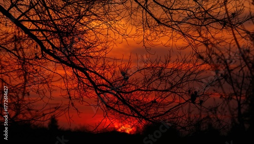 background, sky, nature, tree, landscape, orange, sunset, silhouette, beautiful, foliage, romantic, horizon, atmosphere, twilight, dusk, branch, golden hour, evening, outdoors, scenery, picturesque, calm, natural beauty, peaceful, scenic, serene, tranquil, vibrant, warm colors