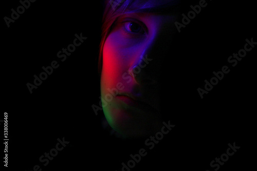 face, woman, dark, eye, black, beauty, portrait, smoke, abstract, beautiful, young, hair, person, art, boy, eye, fashion, model, lip, head, people, lady, blue, light, nose, many-coloured, motley, flowery, many-coloured, chromatic, gloomy, shaded, neon, nightlife, clubber, ultraviolet, colourful, lifestyle, nightclub