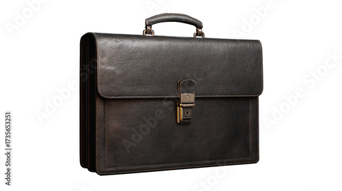 Dark professional leather briefcase with metallic shimmer effect isolated on transparent background