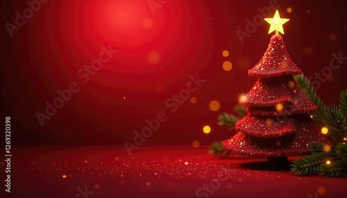 Dark red glitter background with a golden glow and branches of the Christmas tree, glow, , tree decoration