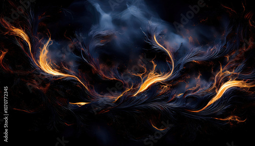 Dark, smoky tendrils with glowing ember sparks drift through a charcoal background, creating a mysterious and atmospheric scene full of energy and intrigue