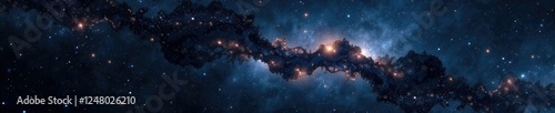 Dark space with twinkling silver stars and flecks of grey matter, nebula, dark