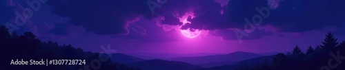 Dark, stormy night with a single light source, purple, dark
