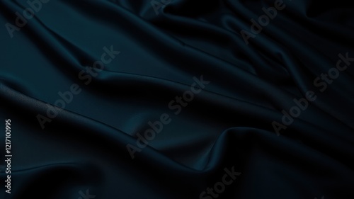Dark Teal Fabric Draped in Elegant, Smooth Waves for a Luxurious Background