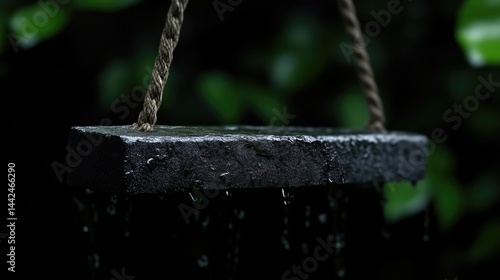 swing, rain, wet, dark, wood, hanging, garden, jungle, nature, black, stone, water, drop, rustic, wooden, swinging, play, childhood, entertainment, summer, rainy, damp, forest, raindrop, swingset, playful, relaxing, tranquil, rainy day, peace, still, closeup, macro, detail, texture, moisture, humidity, element, organic