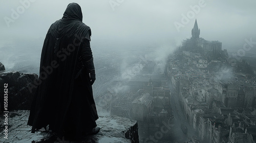 cliff, mountain, high, magician, sorcerer, evil, dark, top, bad, cape, mage, daemon, grave, castle, black, death, cloud, halloween, mediaeval, night, fog, skittish, scarey, warrior, knight, devil, horror, fright, fear, terror, haunted, fairy tale, mist, midnight, darkness, dramatic, mystery, warlock, sinister, nightmare, monochrome, gloomy