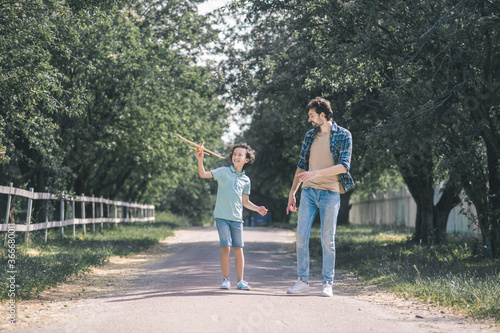 park, father, father, son, boy, generation y, childhood, parenthood, single parent, fathers day, together, leisure, summer, weekend, vacation, dark-haired, teenage, teenage, daytime, lifestyle, family, bearded, young adult, caucasian, plane, toy, playing, involved, happy, children, outside