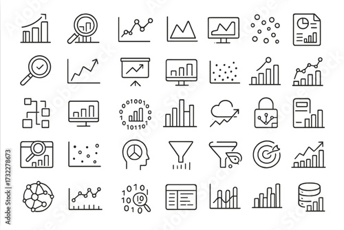 datum, analysis, icon, set, vector, chart, graph, statistic, line, thin, outline, symbol, signs, infographic, research, report, growth, business, marketing, database, flowchart, funnel, diagram, presentation, target, finance, trend, strategy, cloud, technology, information, web, editable, stroke, monitoring, security, performance, development