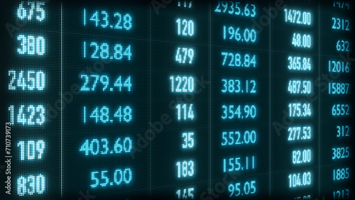 Date, financial figures, numbers, statistics. Blue spreadsheet with business data. Analyzing, market research, financial report. 3D illustration