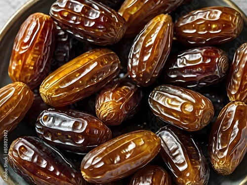 dates close up. date palm background. Date palm on a traditional craftsman market.Horizontal image.