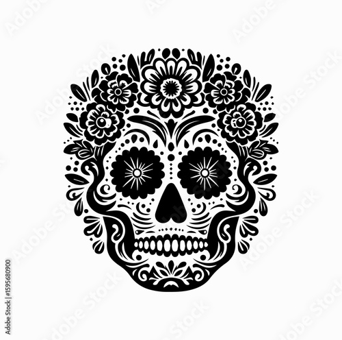 Day of the Dead Skull Mask Silhouette with Marigold Flowers – Mexican Cultural Vector