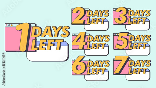 week, design, alarm, vector, minute, promotion, signs, 7, sticker, marketing, shopping, announcement, 8, 50s, 60s, 70s, 80s, 90s, retro, down, three, offer, number, 5, count, countdown, badge, left, 2, timer, 6, 1, go, banner, sale, time, 1, 2, three, 4, 5, 6, 7, 8, 4, only, day