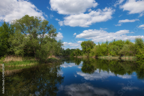 lake, water, sky, river, landscape, nature, blue, forest, tree, summer, cloud, tree, green, duck pond, outdoors, cloud, beauty, park, spring, grass, calm, mirror, beautiful, natural, photo, season, screensaver, tour tourism, wallpaper, picture