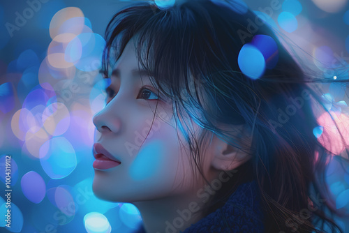 Dazzling blue bokeh background, colorful neon lights, and abstract background give a modern feel.