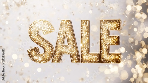 Dazzling gold glittering sale sign retail space graphic design vibrant environment eye-catching concept
