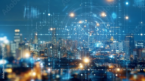 architecture, city, city landscape, urban, skyline, skyscraper, building, modern, downtown, night, illuminated, light, futuristic, technology, digital, innovation, connectivity, network, datum, information, progress, development, growth, metropolis, business, finance, commerce, economy, transportation, infrastructure, abstract, aerial, landscape, panorama, environment, energy, power, light, pattern, texture, future, smart, bright, vibrant, dynamic, bustling, cosmopolitan