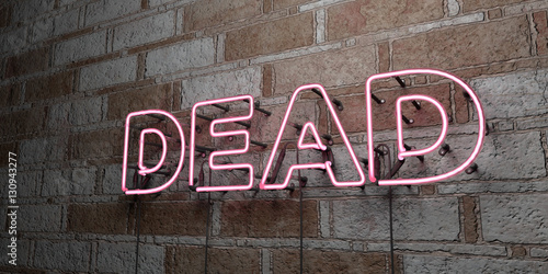 DEAD - Glowing Neon Sign on stonework wall - 3D rendered royalty free stock illustration. Can be used for online banner ads and direct mailers..