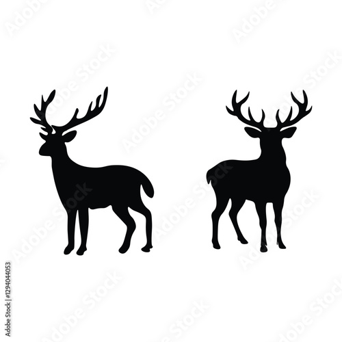 cervid, animal, silhouette, vector, mammal, nature, reindeer, stag, illustration, isolated, antler, black, elk, white, wildlife, animal, christmas, antelope, hunting, buck, moose, horn