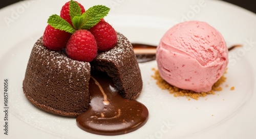 Decadent Chocolate Lava Cake with Fresh Berries and Ice Cream Dessert