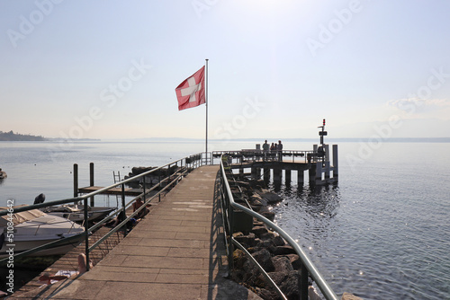 water, travel, tour tourism, switzerland, swiss, sunny, summer, sky, leman, vacation, lake, cross, geneva, city, flag, landscape, flag pole, european, europa, day, lakefront, canton, destination, lakeshore, lakeshore, mont blanc, public, holiday maker, transport, transportation, under, mountain, bridge