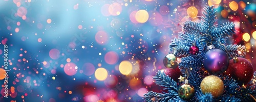 christmas, tree, ornament, light, bokeh, snow, festive, holiday, celebration, decoration, winter, december, season, sparkle, glow, red, gold, purple, blue, background, joyful, merry, happy, spirit, cheer, family, tradition, present, gift, peace, love, joy