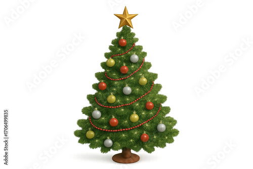 christmas, tree, decoration, ornament, holiday, three-dimensional, render, rendering, transparent, background, celebration, festive, winter, season, christmas, gold, star, colourful, ball, bauble, garland, light, design, element, isolated, object, greeting, card, invitation, new, year, december, eve, pine, conifer