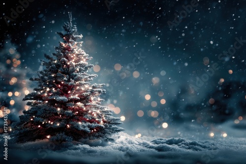 Decorated christmas tree with water droplets and ornament reflects golden light during the festive holiday season