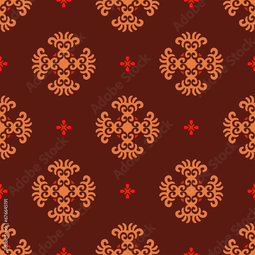 Decorative Asian Folk Seamless Pattern. Ornament of Asian Nomads style: Kyrgyz, Kazakhs, Bashkirs, Tatars, Yakut, Mongols. Ethnic Vector Illustration for Paper Products, Textiles.