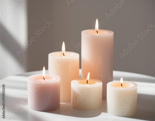 candle, decorative, home decor, elegant, arrangement, wax, flames, light, ambience, relaxation, soothing, centrepiece, pillar, scented, white, ivory, soft light, cosy, warm, glow, interior design, decoration, aesthetic, peaceful, calming, stylish, modern, minimalist, chic, serene