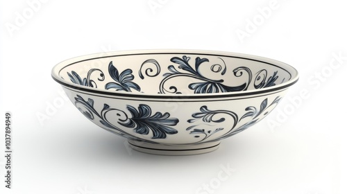 Decorative ceramic bowl with floral patterns isolated on a white background. Generative AI