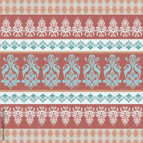 leaf, traditional, ethnic, textile, seamless, background, decoration, graphic, intricate, ornate, design, vintage, fabric, native, damask, vector, striped, ornament, texture, tribal, embroidery, stripes, carpet, border, pattern, elegance, curve, batik, kilim, scrollwork, floral, fashion, enclosed, luxury, blue, classic, print, beige, abstract, teal, wallpaper, green, art, elegant, bedding