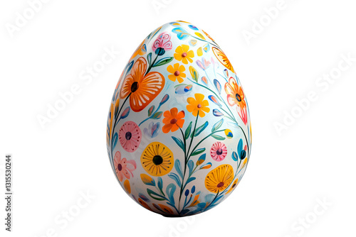 Decorative Easter egg with colorful floral patterns isolated on transparent background