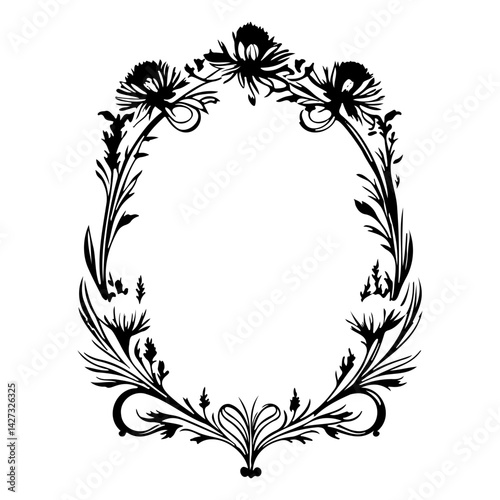 floral, frame, border, decoration, vector, design, black, ornament, elegant, pattern, nature, drawing, vintage, botanical, illustration, style, art, graphic, isolated, outline, flourish, swirl, element, shape, card, background, wedding, invitation, template, artistic