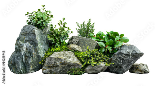 Decorative green garden with stones isolated on a transparent background. Generative AI