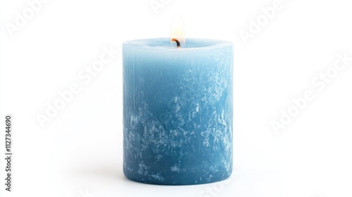 Decorative light blue wax candle with a textured surface isolated on a white background for home decor and ambiance enhancement