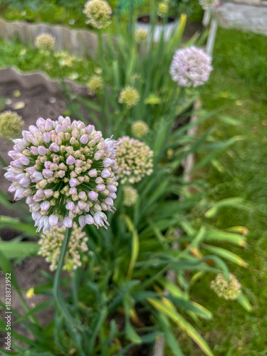 decorative onions bloom at the cottage