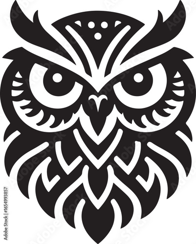 owl, head, bird, animal, nature, wildlife, wisdom, cognition, vector, illustration, icon, logotype, tattoo, silhouette, black-and-white, decorative, tribal, folk art, pattern, intricate, symmetric, graphic, clip art, design element, face, eye, feather, night, hunter, flying, mystical, symbol, emblem, mascot, poster, print, sticker, web design, branding, art, abstract, unique, spiritual, doodle, bird of prey