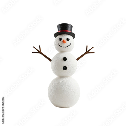Decorative snowman with hat and arms smiling on white background